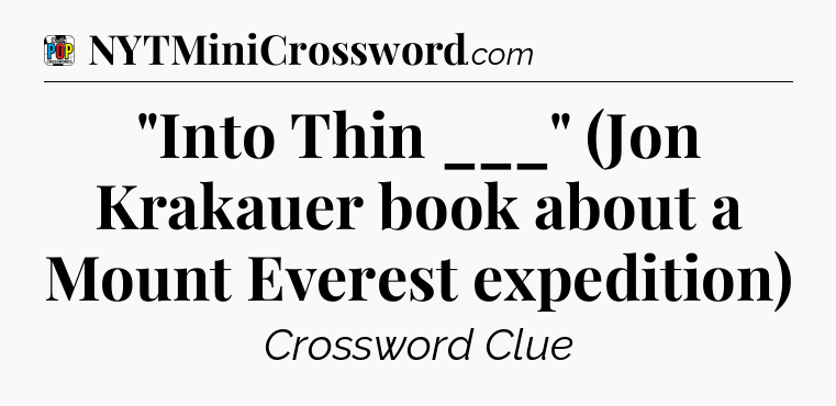 The Answer for “Into Thin ___” (Jon Krakauer book about a Mount Everest expedition) Crossword Clue is: