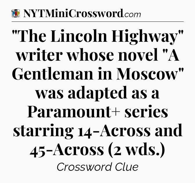 The clue “”The Lincoln Highway” writer whose novel “A Gentleman in Moscow” was adapted as a Paramount+ series starring 14-Across and 45-Across (2 wds.)” most recently appeared in a Daily Pop Crossword on April 21, 2024.