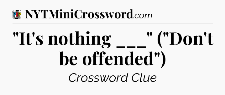 The Answer for “It’s nothing ___” (“Don’t be offended”) Crossword Clue is: