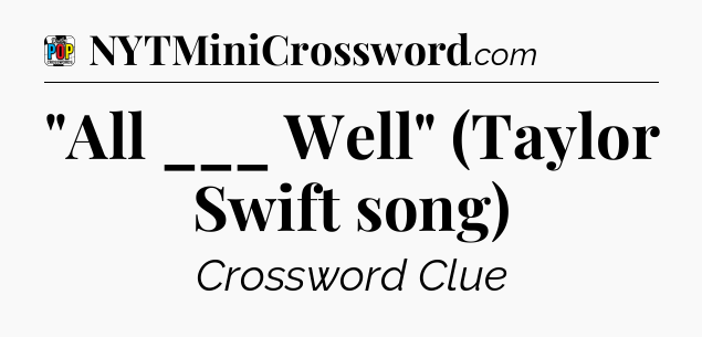 The Answer for “All ___ Well” (Taylor Swift song) Crossword Clue is: