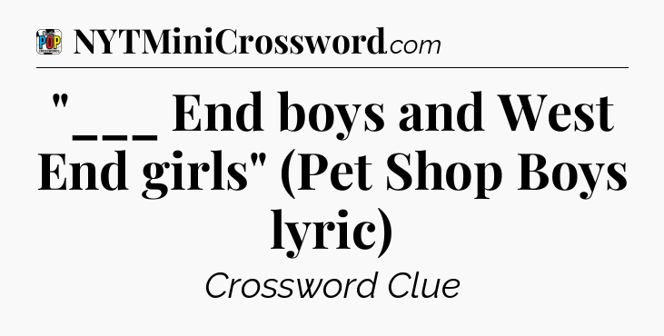 The Answer for “___ End boys and West End girls” (Pet Shop Boys lyric) Crossword Clue is: