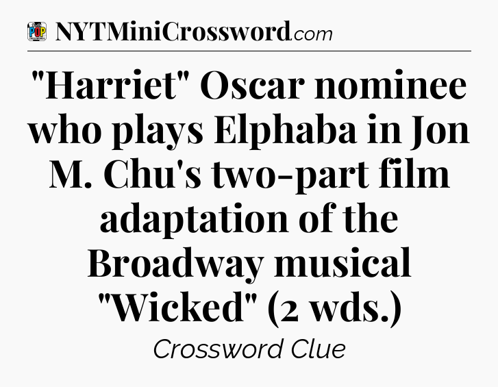 The clue “”Harriet” Oscar nominee who plays Elphaba in Jon M. Chu’s two-part film adaptation of the Broadway musical “Wicked” (2 wds.)” most recently appeared in a Daily Pop Crossword on May 29, 2024.
