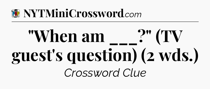 The Answer for “When am ___?” (TV guest’s question) (2 wds.) Crossword Clue is: