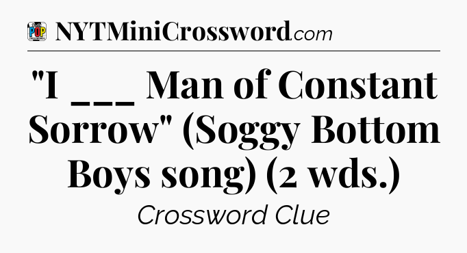 You’ll be glad to know, that your search for tips for Daily Pop Crossword game is ending right on this page. On this page we are posted for you “I ___ Man of Constant Sorrow” (Soggy Bottom Boys song) (2 wds.) Crossword Clue answers, cheats, walkthroughs and solutions. This game was created by a PuzzleNation team that created a lot of great games for Android and iOS.