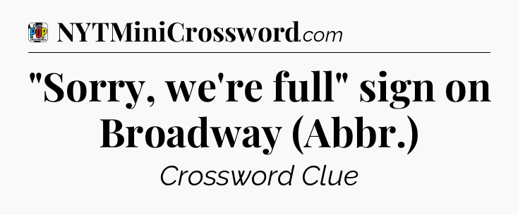 The Answer for “Sorry, we’re full” sign on Broadway (Abbr.) Crossword Clue is:
