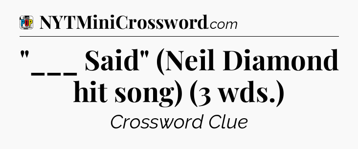 The Answer for “___ Said” (Neil Diamond hit song) (3 wds.) Crossword Clue is: