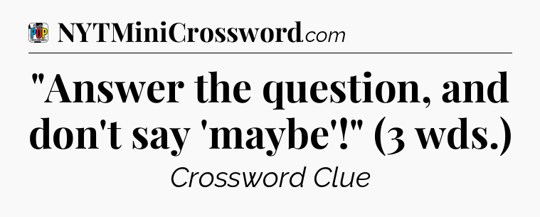 The Answer for “Answer the question, and don’t say ‘maybe’!” (3 wds.) Crossword Clue is: