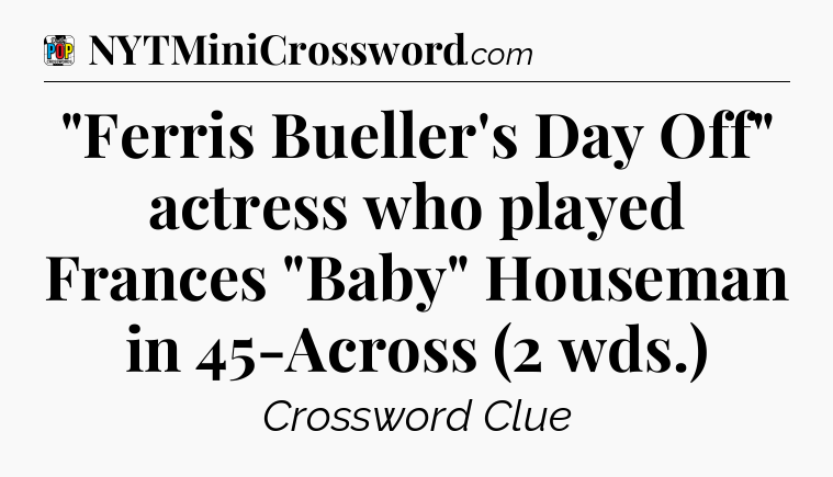Many people are looking for this kind of information, because they want to pass each level. Especially for this we guessed Daily Pop Crossword “Ferris Bueller’s Day Off” actress who played Frances “Baby” Houseman in 45-Across (2 wds.) answers for you and placed on this website.