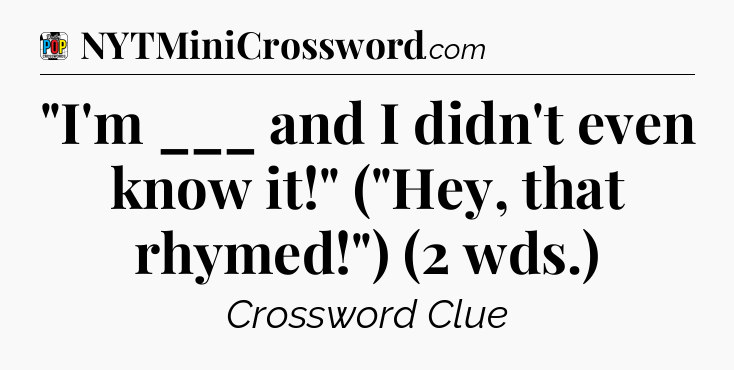 The Answer for “I’m ___ and I didn’t even know it!” (“Hey, that rhymed!”) (2 wds.) Crossword Clue is: