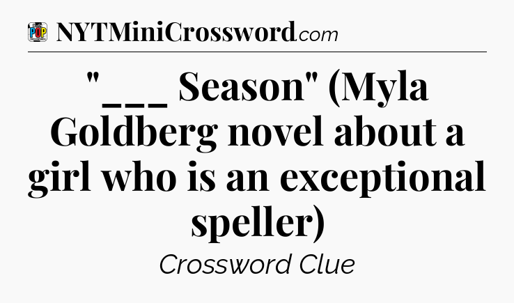 You’ll be glad to know, that your search for tips for Daily Pop Crossword game is ending right on this page. On this page we are posted for you “___ Season” (Myla Goldberg novel about a girl who is an exceptional speller) Crossword Clue answers, cheats, walkthroughs and solutions. This game was created by a PuzzleNation team that created a lot of great games for Android and iOS.