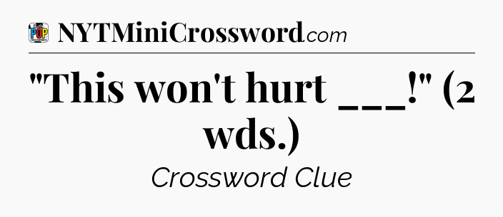 The Answer for “This won’t hurt ___!” (2 wds.) Crossword Clue is: