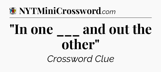 The Answer for “In one ___ and out the other” Crossword Clue is:
