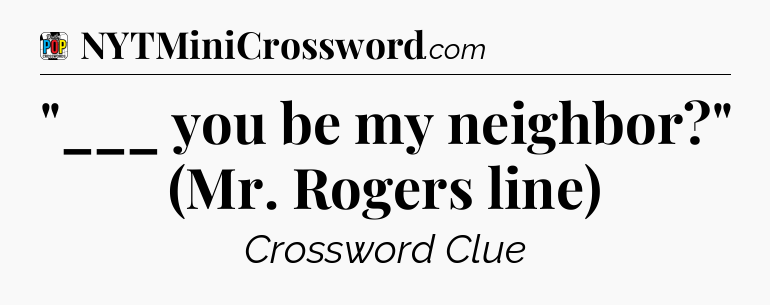 The Answer for “___ you be my neighbor?” (Mr. Rogers line) Crossword Clue is: