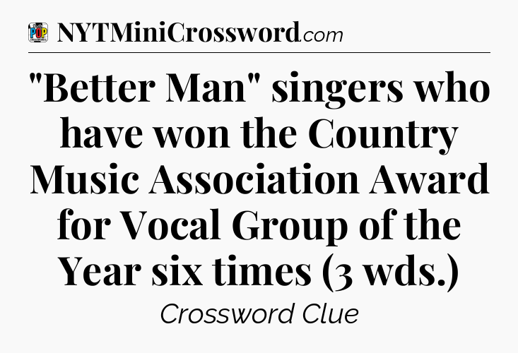 The clue “”Better Man” singers who have won the Country Music Association Award for Vocal Group of the Year six times (3 wds.)” most recently appeared in a Daily Pop Crossword on August 12, 2025.