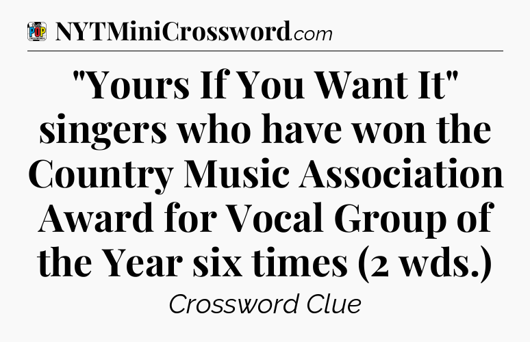 The clue “”Yours If You Want It” singers who have won the Country Music Association Award for Vocal Group of the Year six times (2 wds.)” most recently appeared in a Daily Pop Crossword on August 12, 2025.