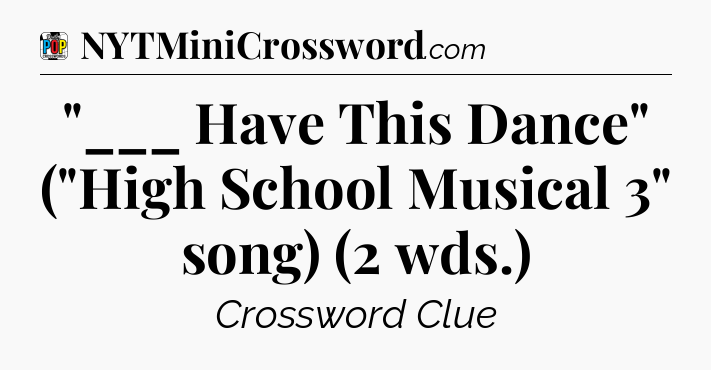 You’ll be glad to know, that your search for tips for Daily Pop Crossword game is ending right on this page. On this page we are posted for you “___ Have This Dance” (“High School Musical 3” song) (2 wds.) Crossword Clue answers, cheats, walkthroughs and solutions. This game was created by a PuzzleNation team that created a lot of great games for Android and iOS.