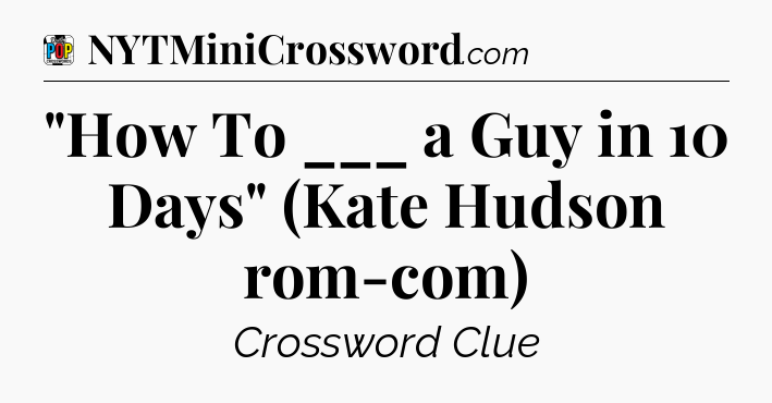 Many people are looking for this kind of information, because they want to pass each level. Especially for this we guessed Daily Pop Crossword “How To ___ a Guy in 10 Days” (Kate Hudson rom-com) answers for you and placed on this website.