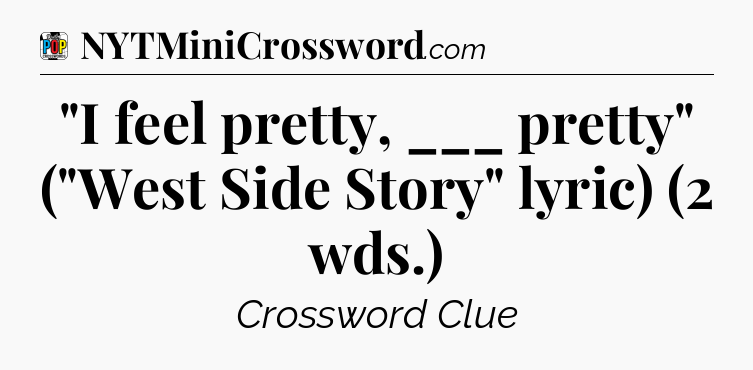 Many people are looking for this kind of information, because they want to pass each level. Especially for this we guessed Daily Pop Crossword “I feel pretty, ___ pretty” (“West Side Story” lyric) (2 wds.) answers for you and placed on this website.
