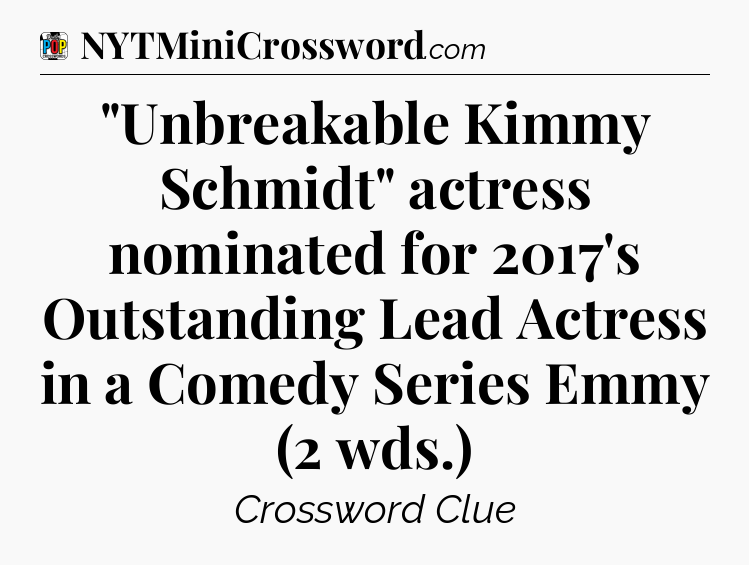 The clue “”Unbreakable Kimmy Schmidt” actress nominated for 2017’s Outstanding Lead Actress in a Comedy Series Emmy (2 wds.)” most recently appeared in a Daily Pop Crossword on August 4, 2025.