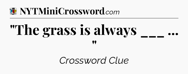 The Answer for “The grass is always ___ … ” Crossword Clue is: