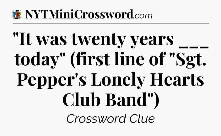 Many people are looking for this kind of information, because they want to pass each level. Especially for this we guessed Daily Pop Crossword “It was twenty years ___ today” (first line of “Sgt. Pepper’s Lonely Hearts Club Band”) answers for you and placed on this website.