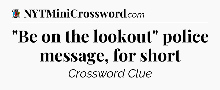 The Answer for “Be on the lookout” police message, for short Crossword Clue is: