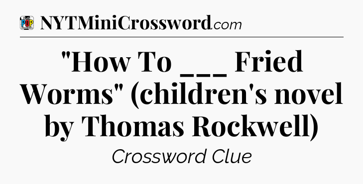 Many people are looking for this kind of information, because they want to pass each level. Especially for this we guessed Daily Pop Crossword “How To ___ Fried Worms” (children’s novel by Thomas Rockwell) answers for you and placed on this website.