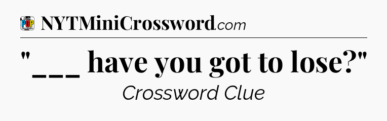 The clue “”___ have you got to lose?”” most recently appeared in a Daily Pop Plus Crossword on January 11, 2025.