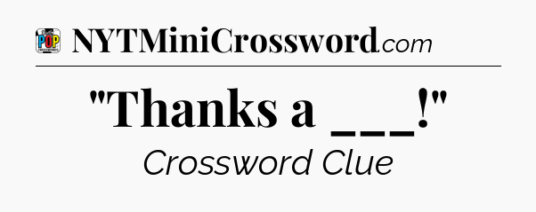 The clue “”Thanks a ___!”” most recently appeared in a Daily Pop Plus Crossword on January 11, 2025.