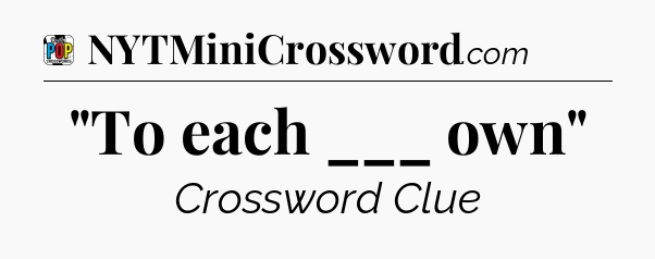 The clue “”To each ___ own”” most recently appeared in a Daily Pop Plus Crossword on January 12, 2025.