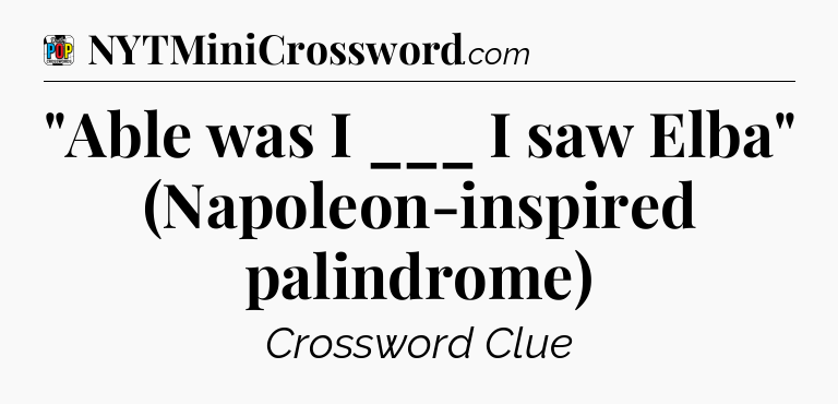 The clue “”Able was I ___ I saw Elba” (Napoleon-inspired palindrome)” most recently appeared in a Daily Pop Plus Crossword on January 13, 2025.