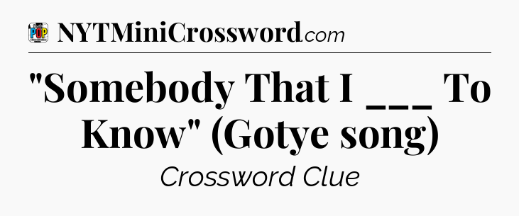 There is 1 possible answer for the crossword clue “”Somebody That I ___ To Know” (Gotye song)”.