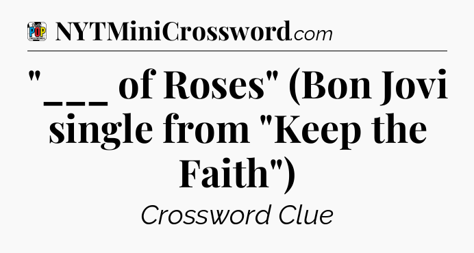 The clue “”___ of Roses” (Bon Jovi single from “Keep the Faith”)” most recently appeared in a Daily Pop Plus Crossword on January 14, 2026.