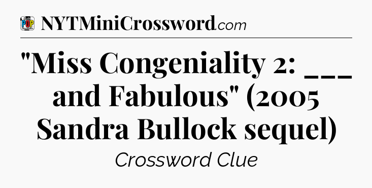 The clue “”Miss Congeniality 2: ___ and Fabulous” (2005 Sandra Bullock sequel)” most recently appeared in a Daily Pop Plus Crossword on January 15, 2026.