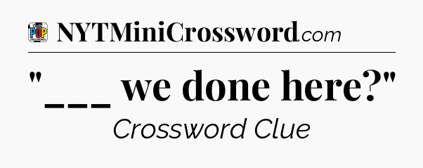 The clue “”___ we done here?”” most recently appeared in a Daily Pop Plus Crossword on January 19, 2024.