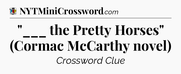 If you landed on this webpage, you definitely need some help with Daily Pop Crossword. This simple page contains the solution for ‘”___ the Pretty Horses” (Cormac McCarthy novel)’ crossword clue. Scroll down and see the answer to this hint!