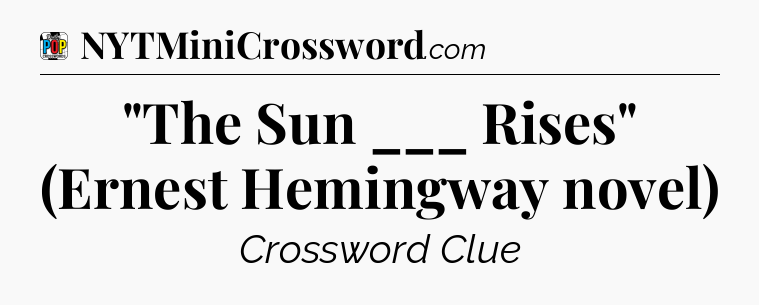 If you landed on this webpage, you definitely need some help with Daily Pop Crossword. This simple page contains the solution for ‘”The Sun ___ Rises” (Ernest Hemingway novel)’ crossword clue. Scroll down and see the answer to this hint!
