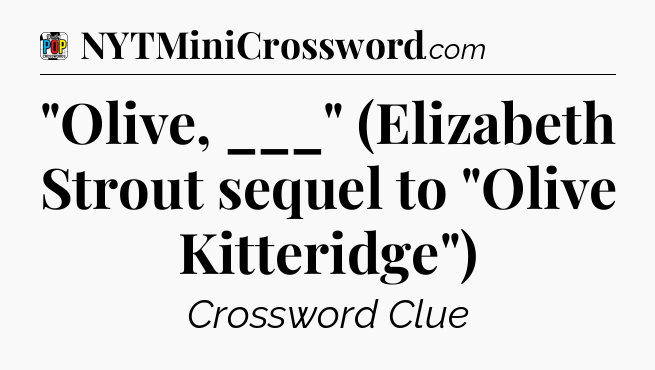 The clue “”Olive, ___” (Elizabeth Strout sequel to “Olive Kitteridge”)” most recently appeared in a Daily Pop Plus Crossword on January 29, 2025.