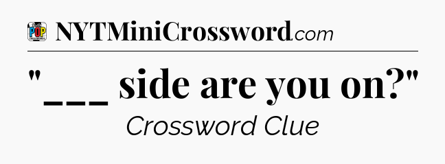 The clue “”___ side are you on?”” most recently appeared in a Daily Pop Plus Crossword on January 3, 2024.