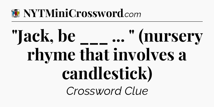 The clue “”Jack, be ___ … ” (nursery rhyme that involves a candlestick)” most recently appeared in a Daily Pop Plus Crossword on January 30, 2026.