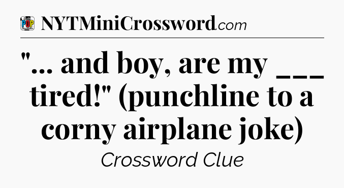 The clue “”… and boy, are my ___ tired!” (punchline to a corny airplane joke)” most recently appeared in a Daily Pop Plus Crossword on October 17, 2025.
