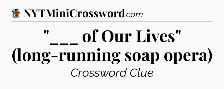 The clue “”___ of Our Lives” (long-running soap opera)” most recently appeared in a Daily Pop Plus Crossword on October 19, 2025.