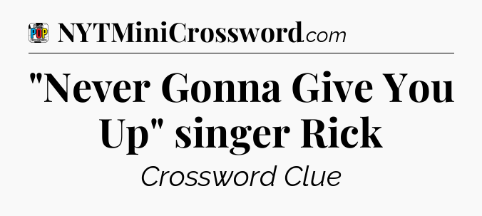 The clue “”Never Gonna Give You Up” singer Rick” most recently appeared in a Daily Pop Plus Crossword on October 20, 2025.