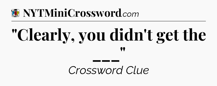 The clue “”Clearly, you didn’t get the ___”” most recently appeared in a Daily Pop Plus Crossword on October 24, 2024.