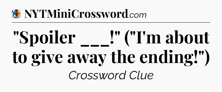 The clue “”Spoiler ___!” (“I’m about to give away the ending!”)” most recently appeared in a Daily Pop Plus Crossword on October 24, 2025.