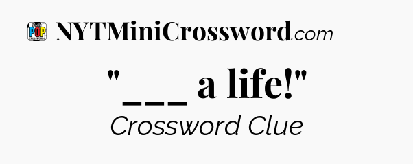 The clue “”___ a life!”” most recently appeared in a Daily Pop Plus Crossword on October 26, 2025.