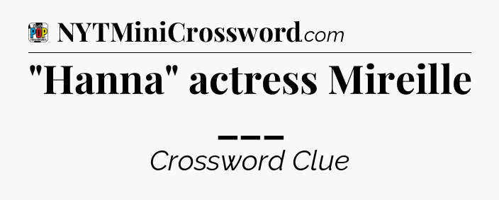 The clue “”Hanna” actress Mireille ___” most recently appeared in a Daily Pop Plus Crossword on October 9, 2023.