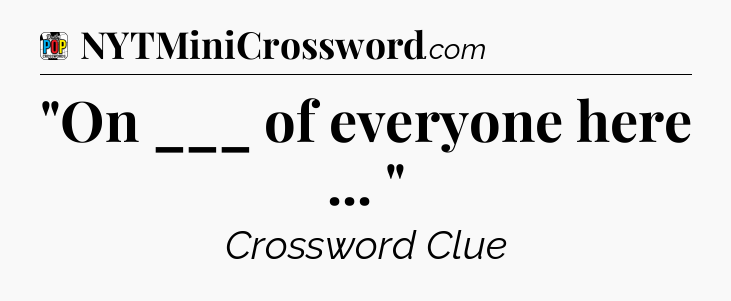 The clue “”On ___ of everyone here … “” most recently appeared in a Daily Pop Plus Crossword on October 9, 2025.