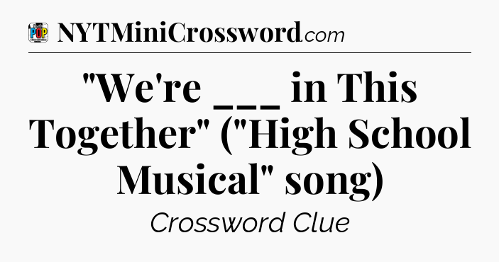 The clue “”We’re ___ in This Together” (“High School Musical” song)” most recently appeared in a Daily Pop Plus Crossword on November 11, 2025.