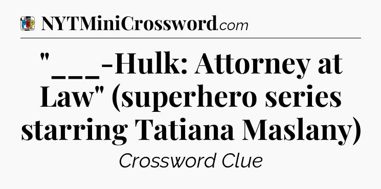 The clue “”___-Hulk: Attorney at Law” (superhero series starring Tatiana Maslany)” most recently appeared in a Daily Pop Plus Crossword on November 16, 2025.